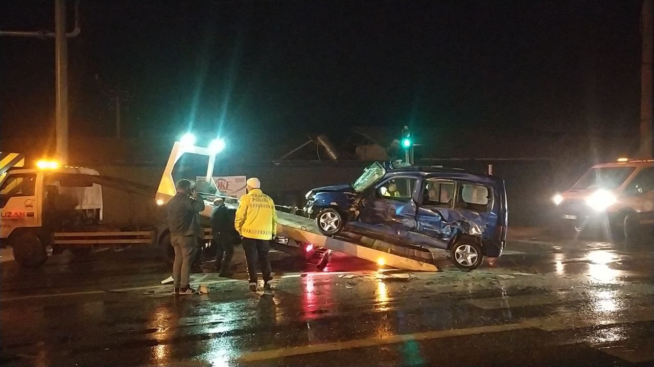 Kazada hurdaya dönen hafif ticari araç çekici vasıtasıyla otoparka çekildi.