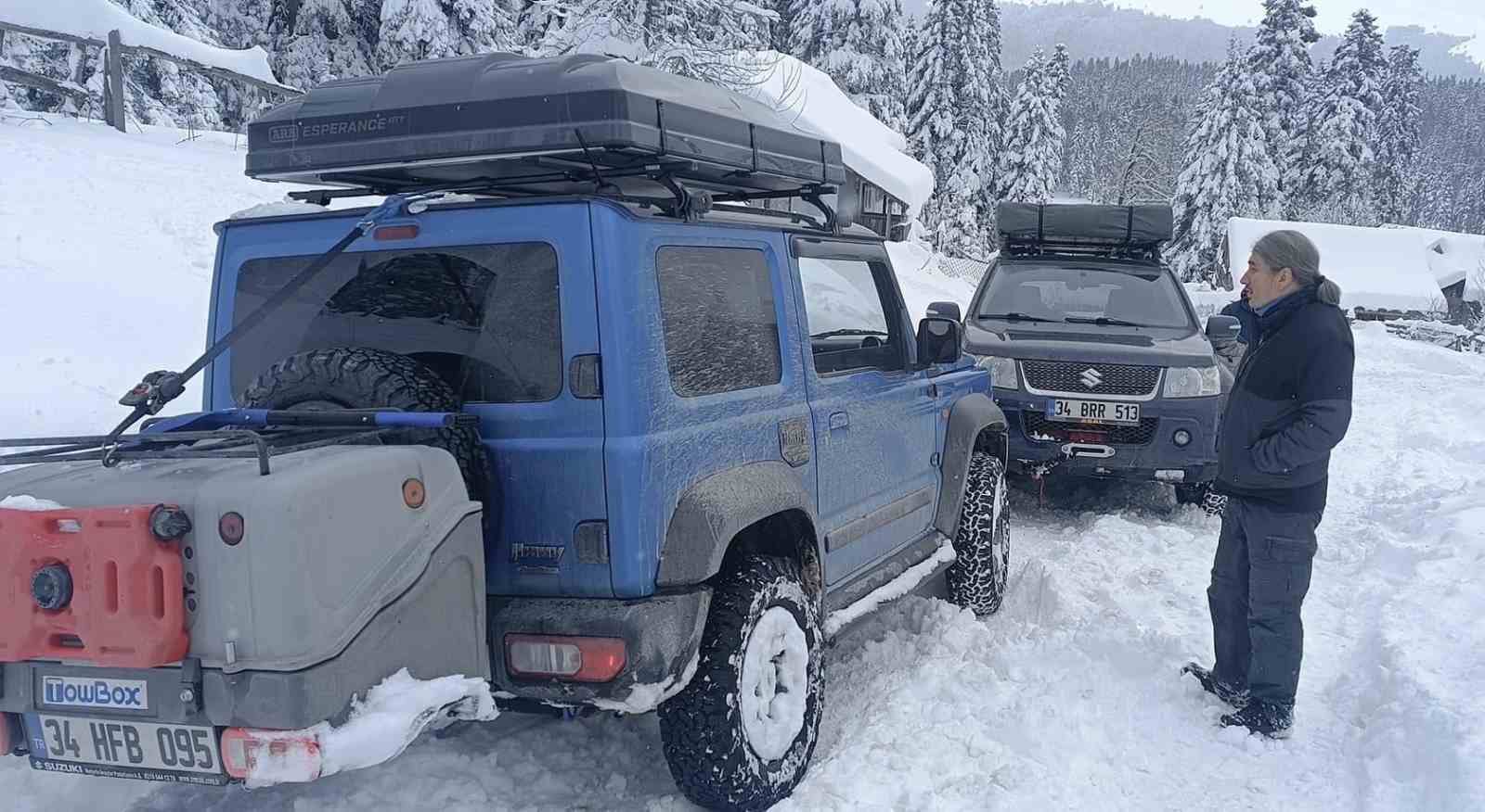 Düzce’nin yüksek kesimlerinde etkili olan kar yağışının ardından bir çok kişi hafta sonunu yaylalarda geçirmek istedi. Kar kalınlığı bazı bölgelerde 1 metreye ulaştı. Araçlarında donanım eksikliği bulunan bir çok kişi ise yollarda kaldı. Yaylalarda olan Düzce Safari Off-Road kulübü üyeleri ise yollarda kalan 25 aracı bulundukları bölgelerden kurtardı. Araç sürücülerine uyarılarda bulunan Düzce Safari Off-Road kulübü üyesi Mesut Acar, “Doğa severler, Off-Roadçı arkadaşlar lütfen dediklerinizi dinlesin. Dün geceden beri yağan yoğun kar yağışından dolayı Mehmet (Albayrak) Başkana gelen çağrılardan dolayı 25’e yakın araç çektik. Lütfen herkese tavsiyemiz ve ricamız kar lastiği olmayan, AT veya MT donanımlı lastiği olmayan veya vinci olmayan arkadaşların lütfen doğaya donanımsız gelmemesi doğa şartlarına uygun gelmelerini özellikle rica ediyoruz. Çünkü doğanın şakası yok. Dağların bize ihtiyacı yok bizim dağlara ve doğaya ihtiyacımız var. Doğanın kıymetini bilmek üzere hepimizin kontrollü ve kurallara uygun hareket etmemiz gerekiyor. Herkesten ricamız herkesin bu kurallara uyması” ifadelerinde bulundu.