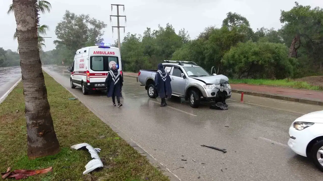 Yolda Kayan Kamyonet Refüjdeki Palmiyeye Çarptı: 2 Yaralı