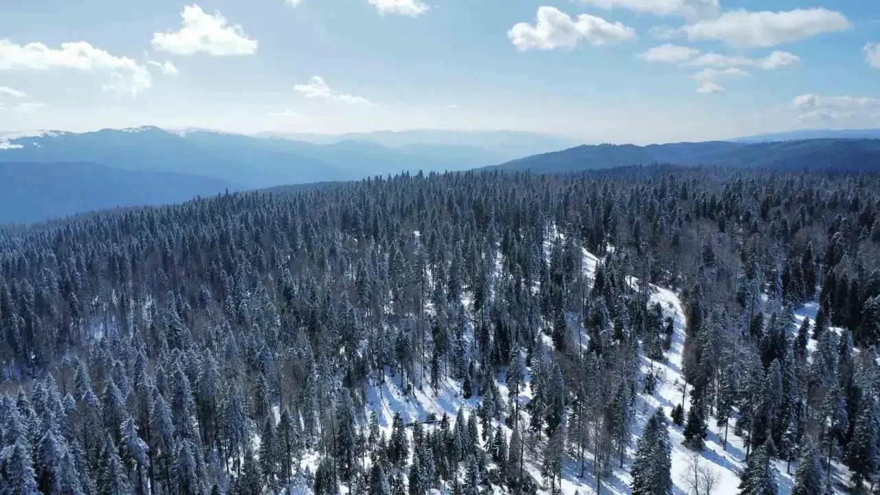 Düzce’nin yüksek kesimleri beyaza bürüdü. Yer yer kar kalınlığının 30 santimetreye kadar çıktığı gözlemlenirken, kartpostallık görüntüler ortaya çıktı. Eğrelti, İkizler, Sinekli, Sakarca gibi yaylalarda oluşan görüntüler havadan dron ile görüntülendi.