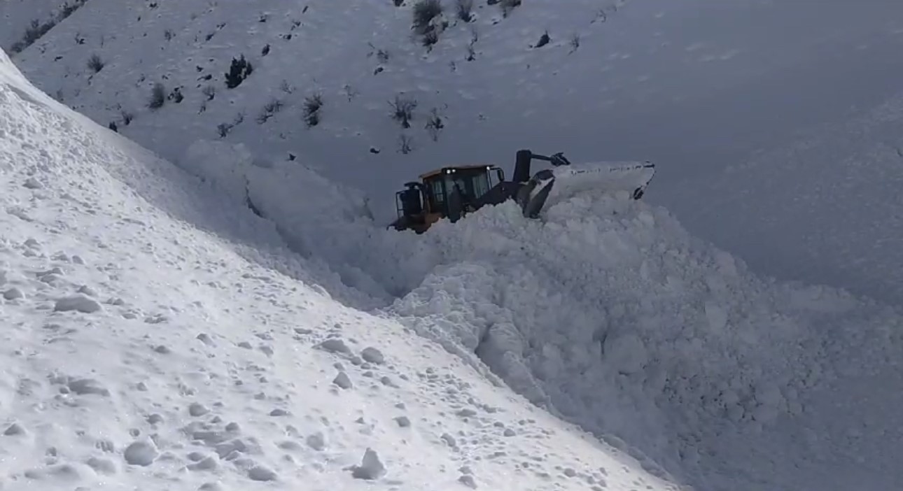 Hakkari’nin Yüksekova ilçesinde yoğun kar yağışı ve tipiden dolayı yollarda oluşan ve yaklaşık 5 metreyi aşan kar tünellerini açmaya çalışan ekipler gece gündüz demeden zorlu bir çalışma yürütüyor.