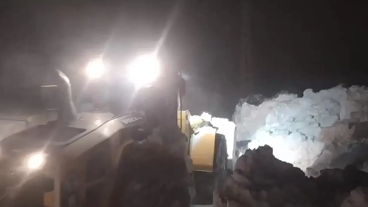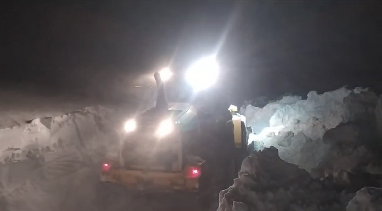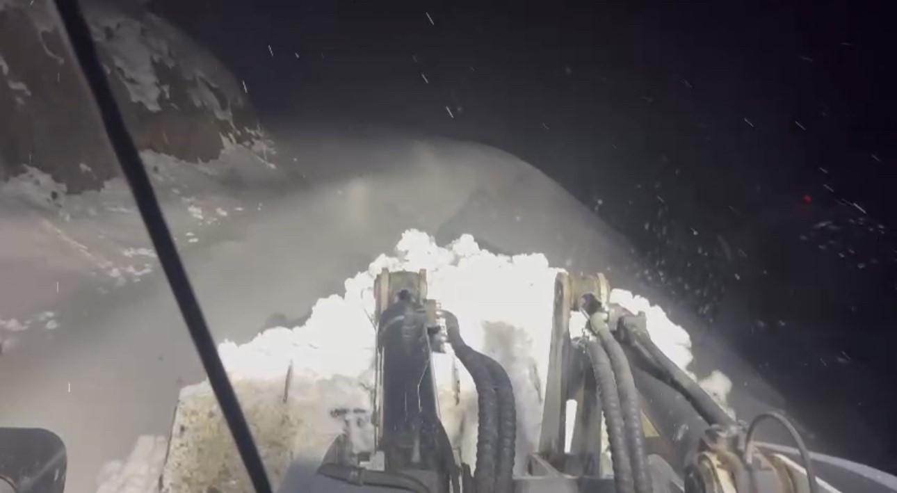 Hakkari’nin Yüksekova ilçesinde kepçe boyunu aşan karda yürütülen yol açma çalışması gece gündüz devam ediyor.