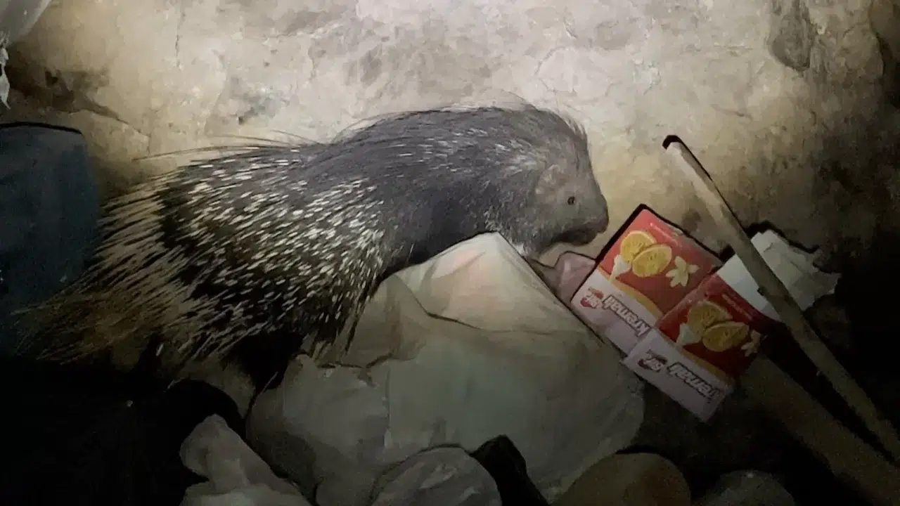 Hakkari’nin Yüksekova ilçesine bağlı Yeşiltaş köyünde nesli tükenmekte olan Hint oklu kirpi görüntülendi.
