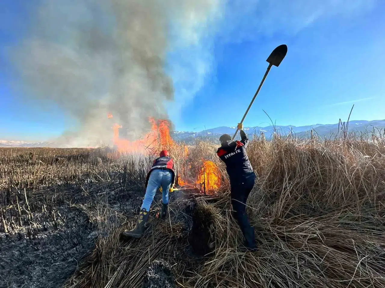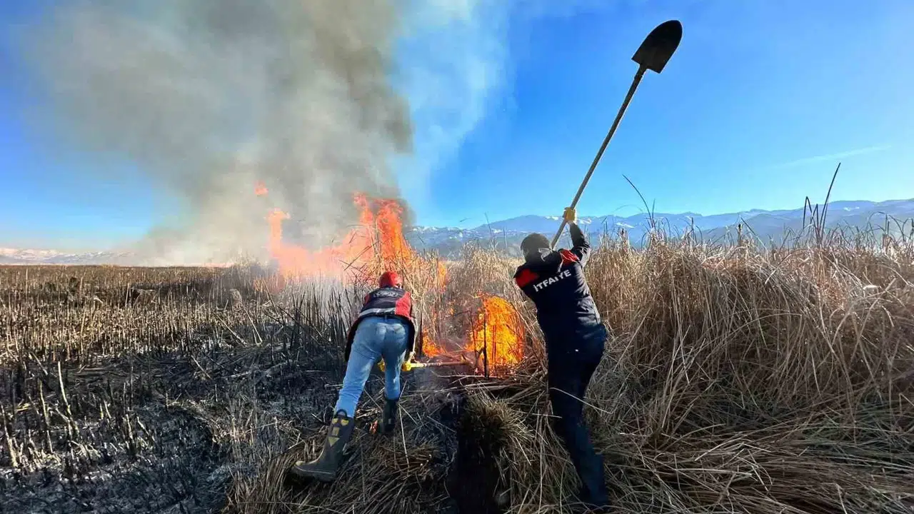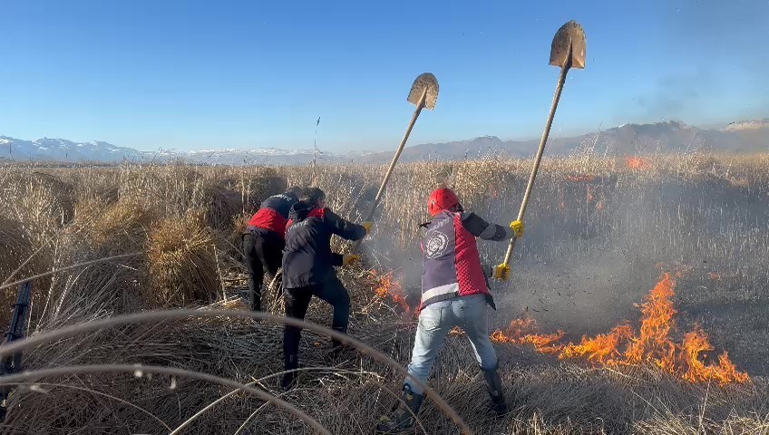 Hakkari’nin Yüksekova ilçesinde birçok kuş türünün yaşadığı Nehil Sazlığı alev alev yanıyor. Bataklıktan dolayı araçlar giremezken, itfaiye ekipler yangın alanına giderek küreklerle söndürmeye çalıştılar.