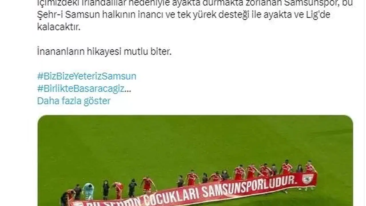 "Biz bize yeteriz ve birlikte başaracağız Samsun" etiketiyle paylaşım yapan Başkan Yıldırım, "Bugün bir kez daha gördük ki; İçimizdeki İrlandalılar nedeniyle ayakta durmakta zorlanan Samsunspor, bu Şehr-i Samsun halkının inancı ve tek yürek desteği ile ayakta ve ligde kalacaktır. İnananların hikayesi mutlu biter" dedi.