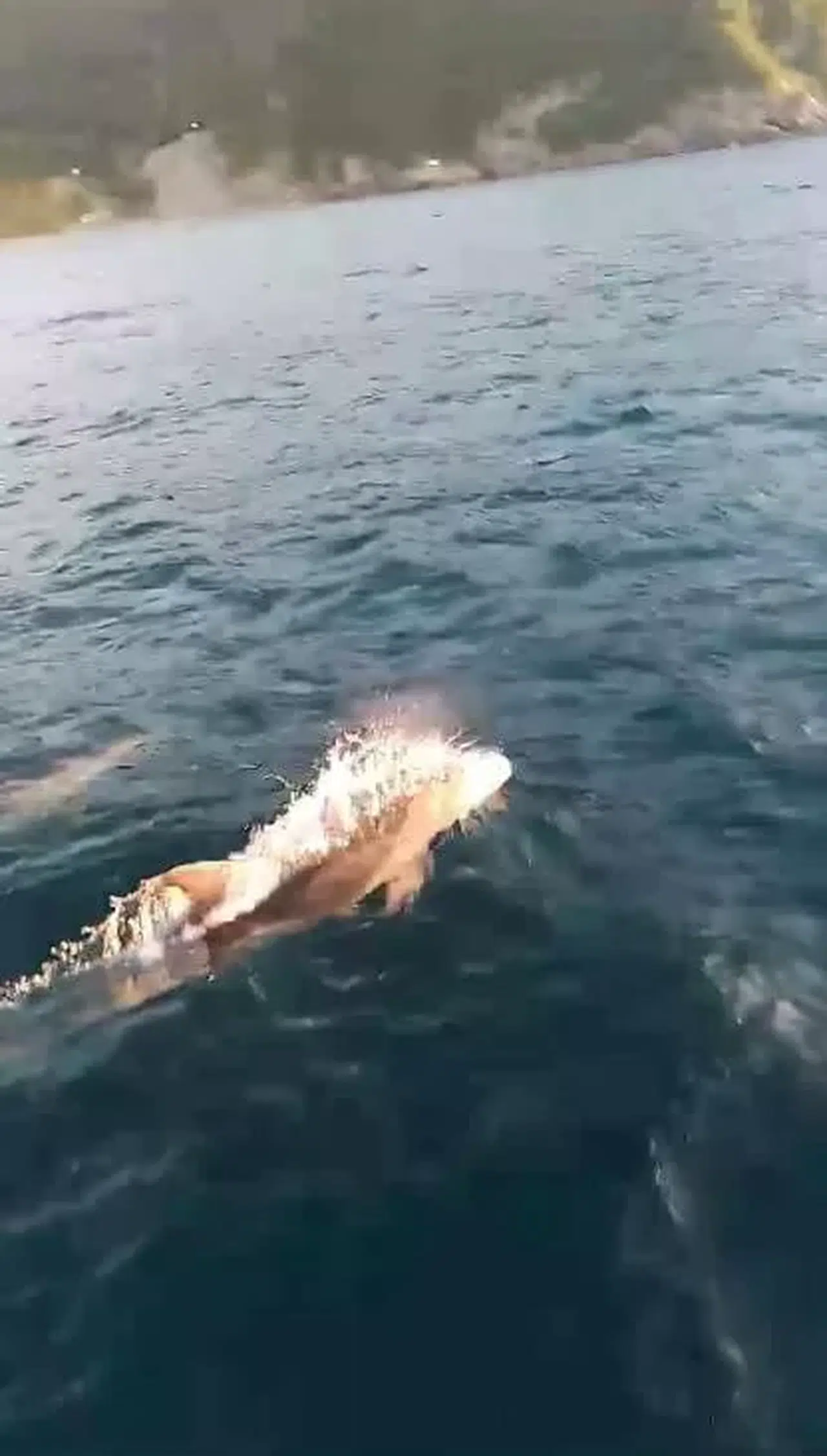 Denize açılan balıkçılar, kıyıya dönmek isterken yunus sürüsü ile karşılaştı. Kendilerine eşlik eden yunusları gören Ahmet Uzun, o anları cep telefonuyla kaydederek sosyal medya hesabından paylaştı. Dakikalarca tekneyle yarışan yunusları gören Uzun, "Misafirlerimizle yarışıyoruz, bize eşlik ediyorlar, onları yerim ben. Tamam hadi gidin yeter. Bugün bizle beraberler" dedi.