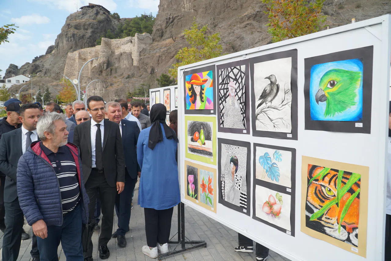 Çorum'un Osmancık ilçesinde Cumhuriyet'in 100. yılı etkinlikleri kapsamında lise öğrencilerince "Yüzüncü Yılda Yüz Eser" temalı resim sergisi açıldı.