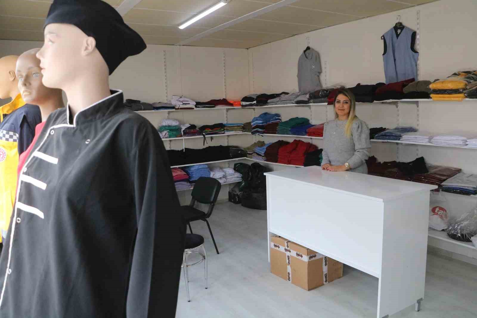 Prefabrik iş yerinde ürettiği iş elbiselerini Türkiye’nin 81 iline gönderdiğini ifade eden Cemre Güler, “6 Şubat’ta büyük bir deprem yaşadım. 2 iş yerimi kaybettim, yıkıldı ve evimiz de çöktü. Yakınlarım vefat etti. Depremden güçlü çıktım. Artık hayata tutunmam gerektiğini fark ettim. Yeni iş yerimde faaliyete devam ediyorum. Burası konteyner iş yeri. 2 iş yerimde burada. Şu anda 7 personelim var. Depremden önce daha fazla personelim vardı ama bir yerden başlamak lazımdı. İşlerimde deprem öncesine göre düşüş var ama yine çok şükür. Ürünlerimi Türkiye’nin 81 iline satıyorum. Özel siparişler alıyorum. Ben bütün depremzedelere her şeyin daha güzel olacağını söylemek istiyorum” dedi.