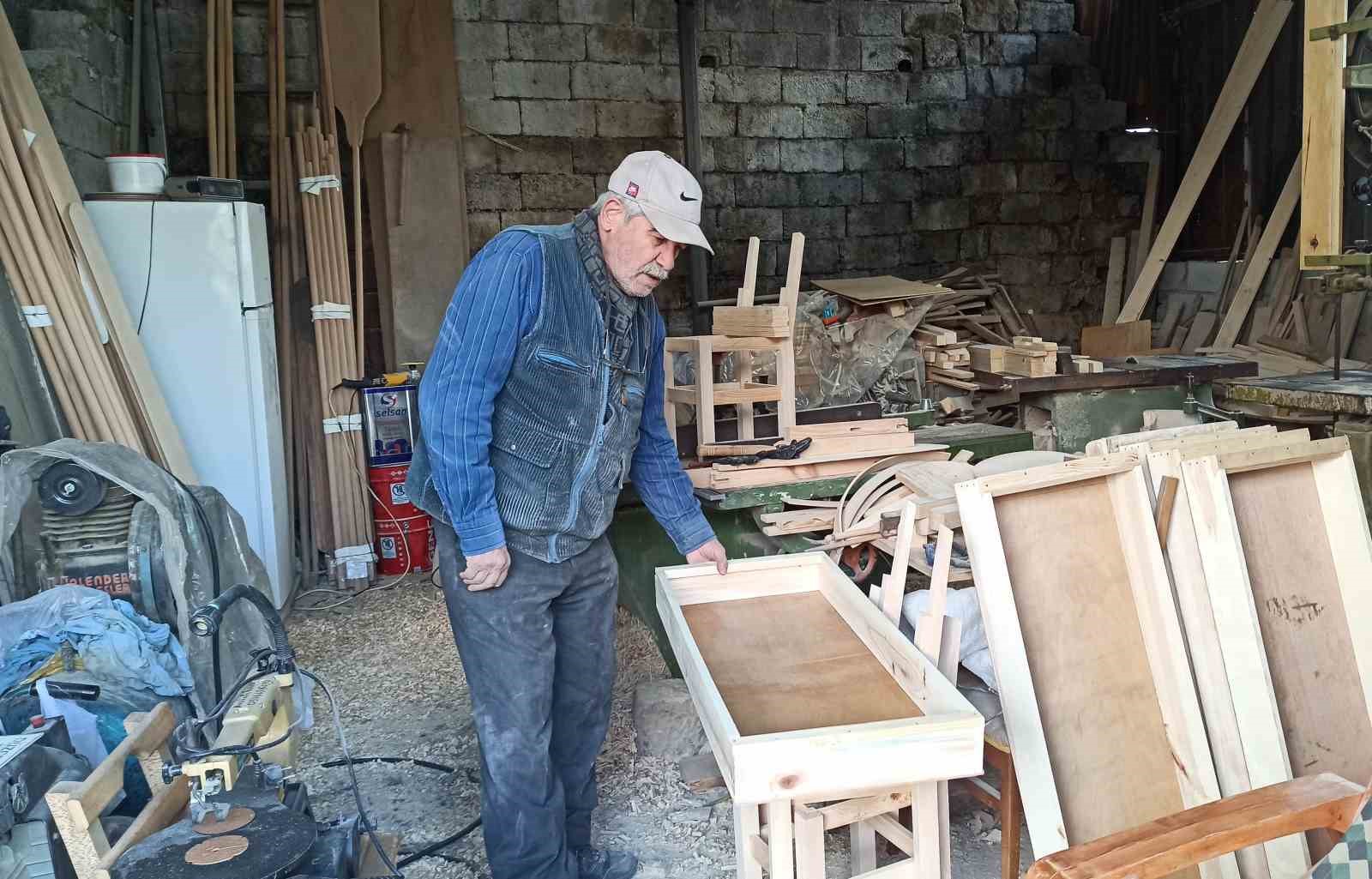 "Tabure, sandalye, fırın küreği yapıyorum. Vatandaş ahşap üzerine ne istiyorsa onları yapıp teslim ediyorum. Hayat bu şekilde devam ediyor. Benim iş yerim tamamen yıkıldı. Üzerinde iki katlı evim vardı o da yıkıldı beraberinde. Bütün eşyalarımız hurdaya gitti. Şimdi de yeniden toparlanmaya çalışıyorum. İş yerimizi tekrar ayağa kaldırmaya çalışıyorum."