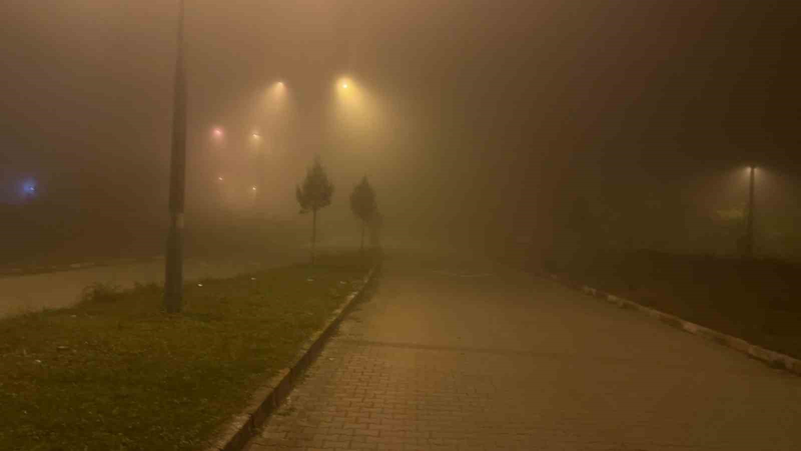 Zonguldak’ın Çaycuma ilçesinde gece saatlerinde sis etkili olurken sürücüler kontrollü ilerledi.